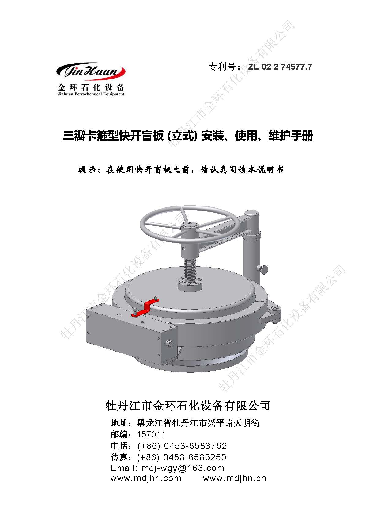 卡箍立式快開盲板說明書